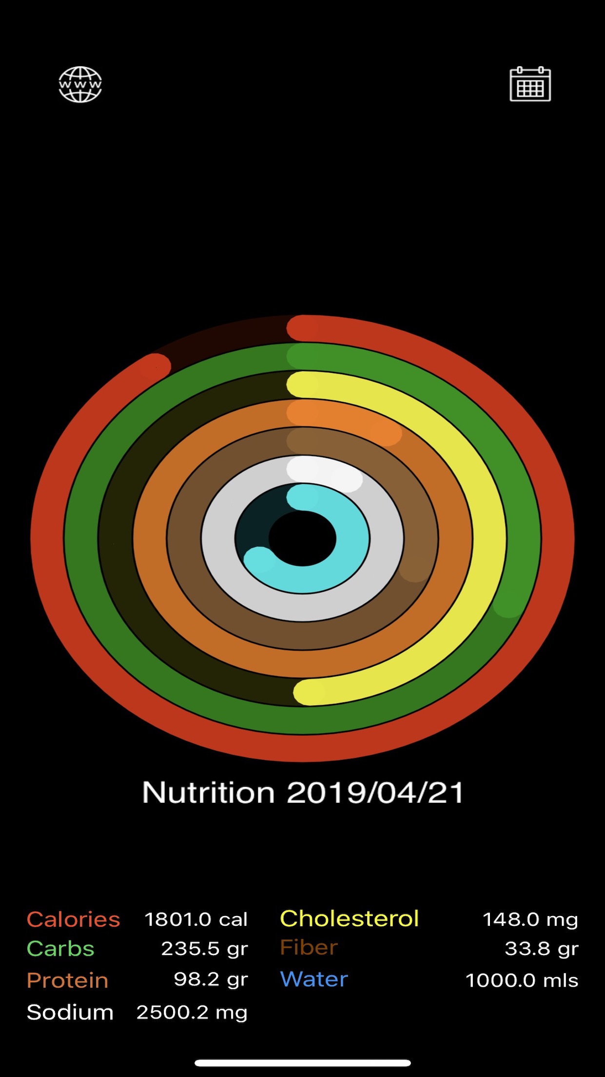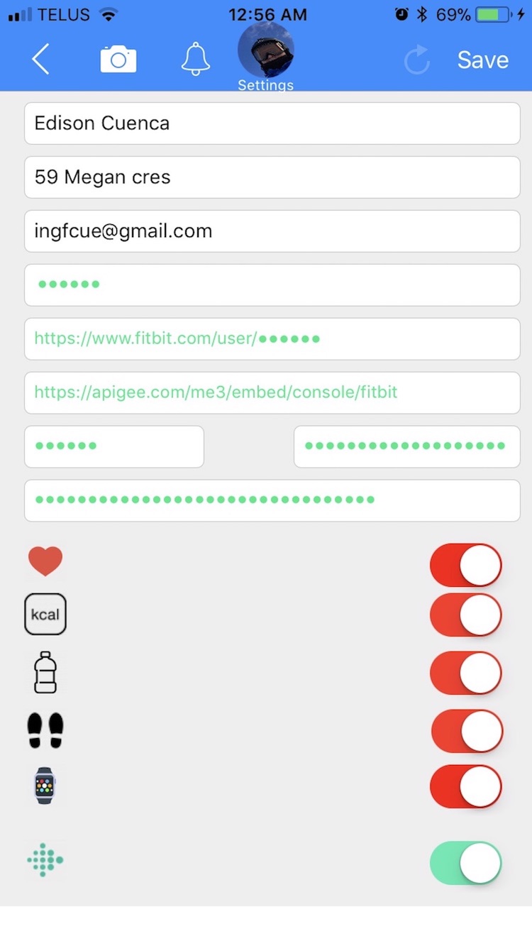 Calories, carbs, fat, fiber, protein, sodium, water, cholesterol are pulled from “Nutrition+ app” or "glucoseplusapp.com" "and pushed to “Apple Watch” as well. Burned calories, steps, sleep data are pulled from “Nutrition+ app” and pushed to “Apple Watch” & "Health"