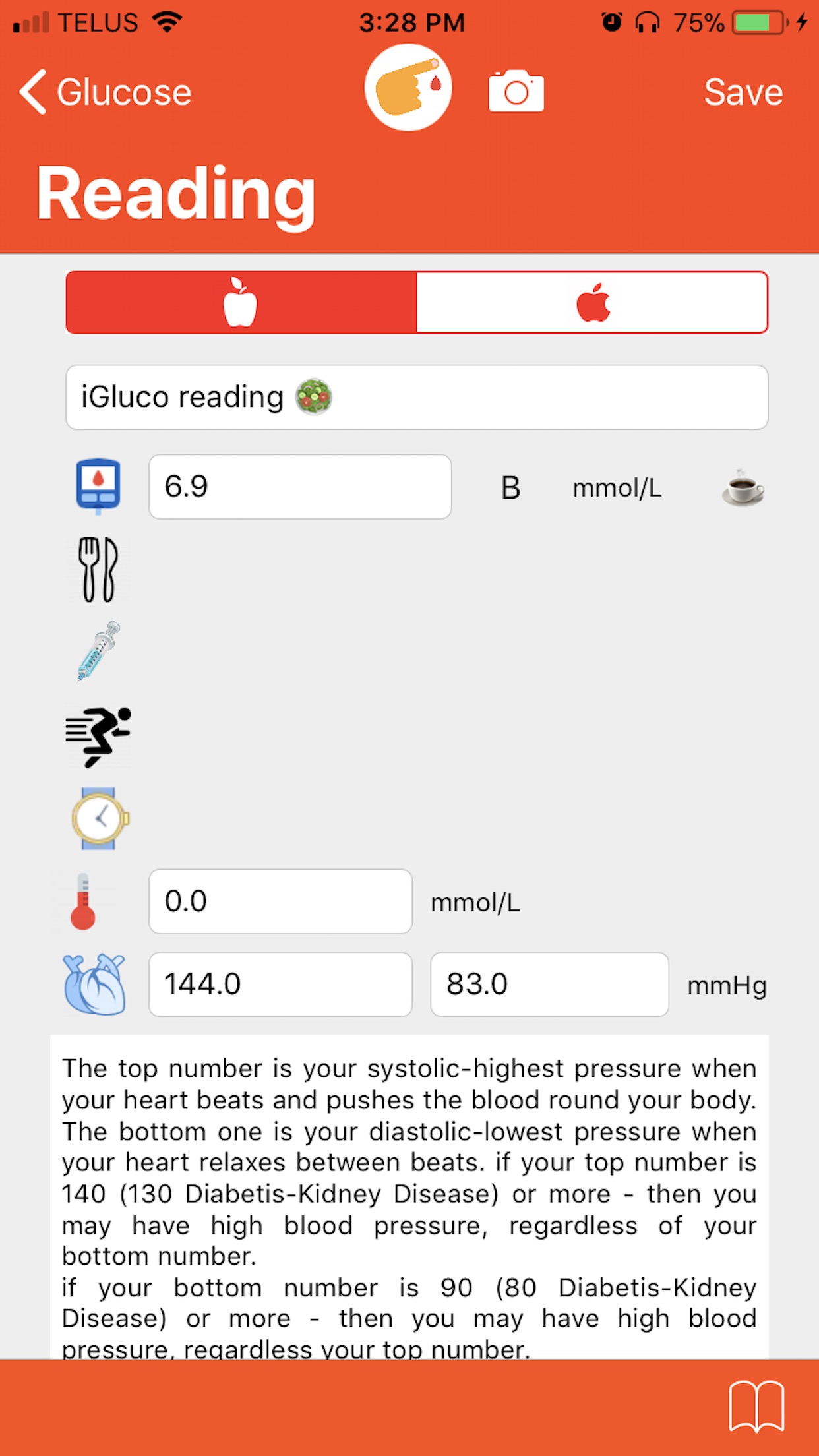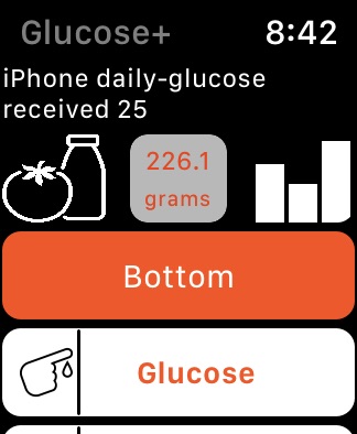 Glucose+ is a glucose, blood pressure, nutrition and activity tracker that allows pull/push daily and current glucose, blood pressure, activity, nutrition, weight and body-fat data to help to control glucose levels.